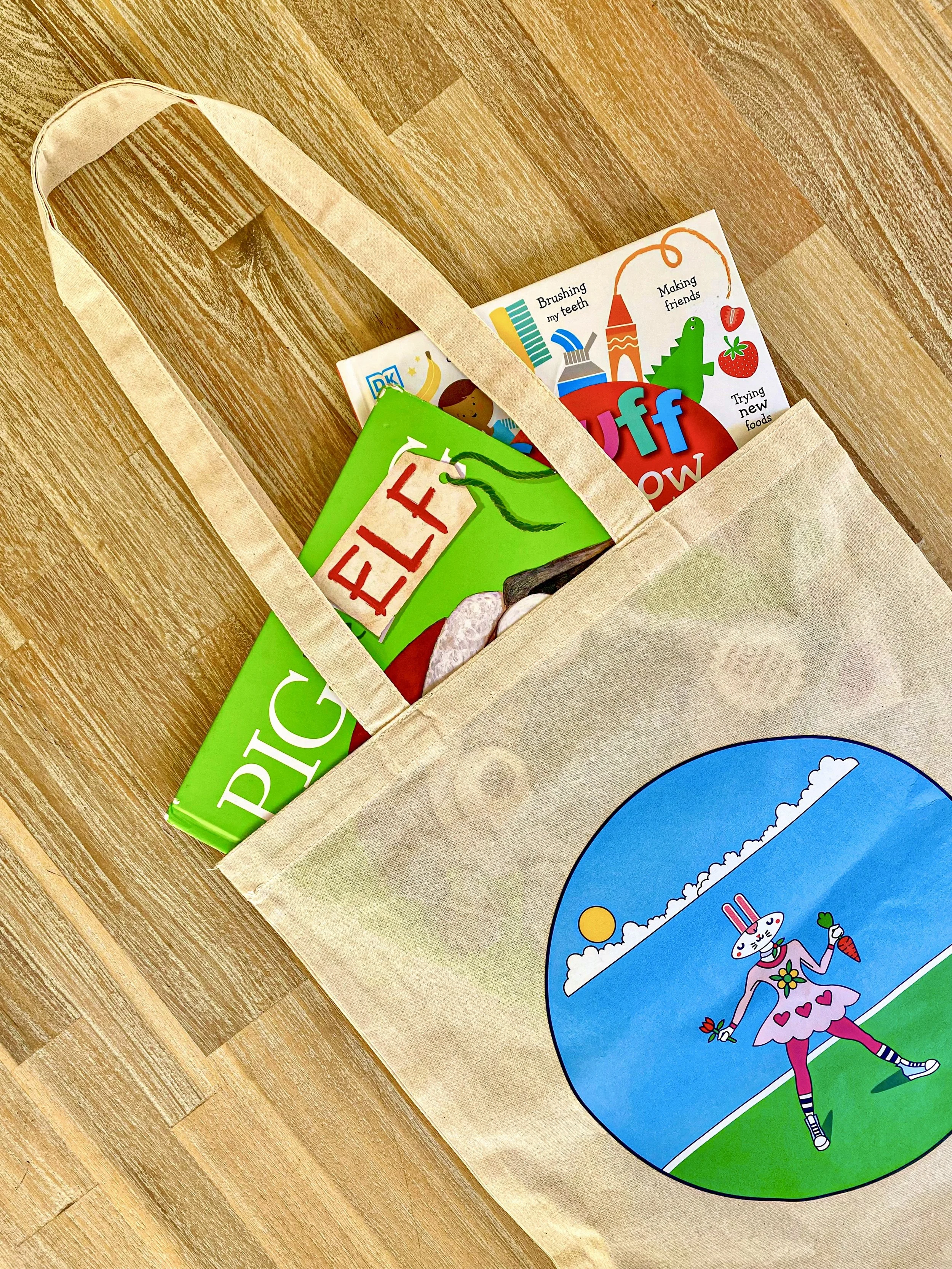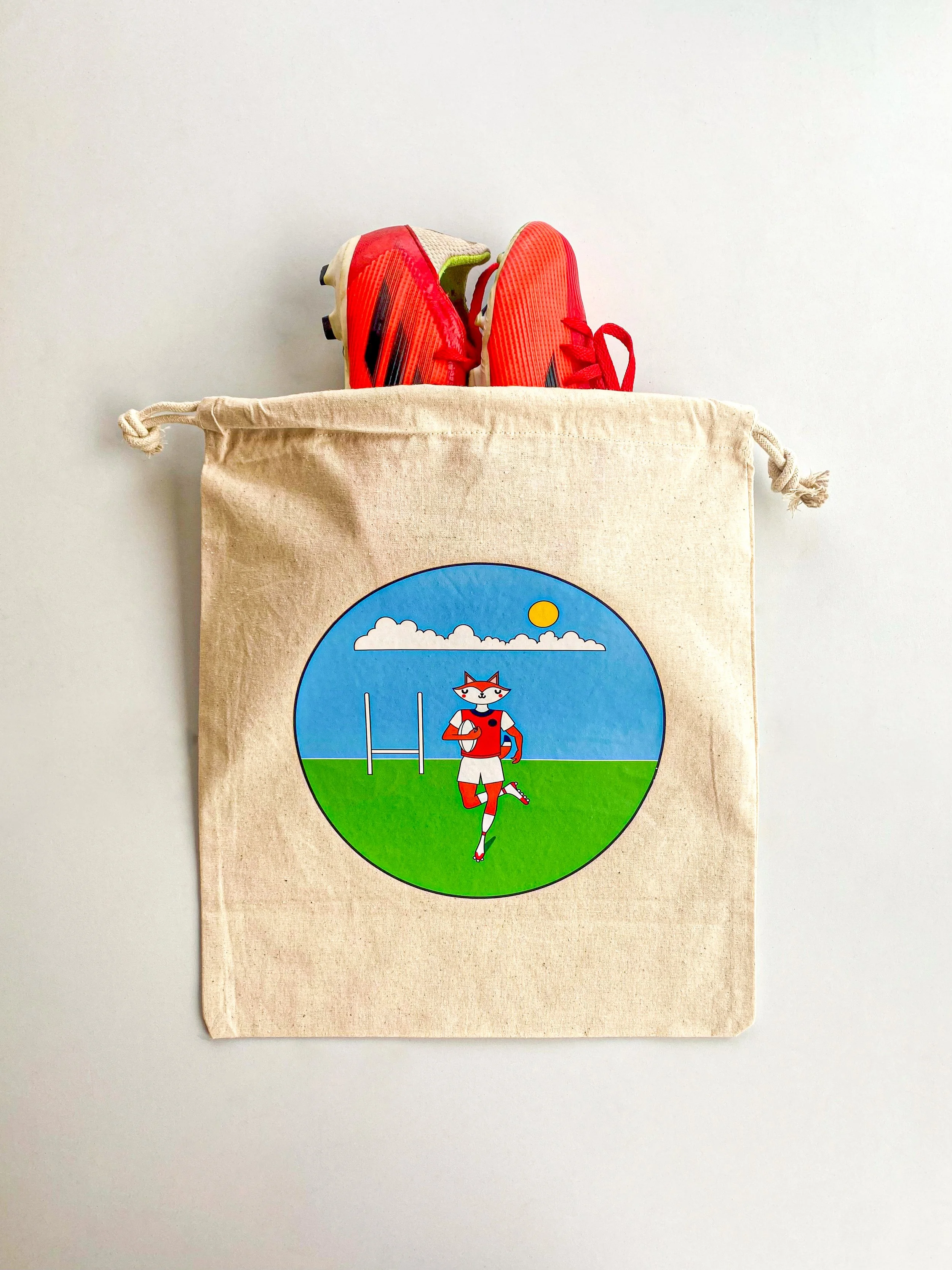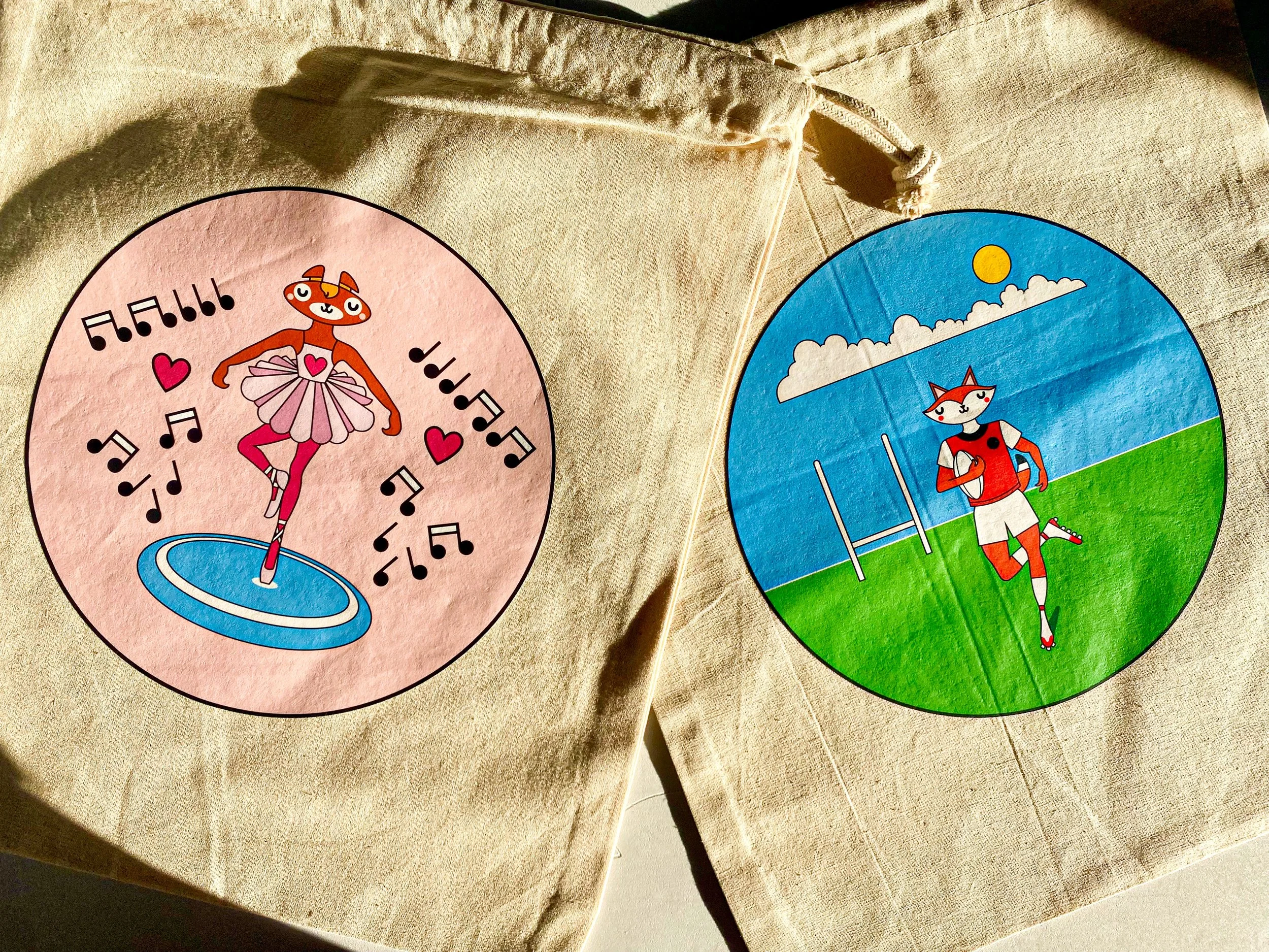 A collection of animal illustrated logo printed on 100% Organic Calico Cotton.
