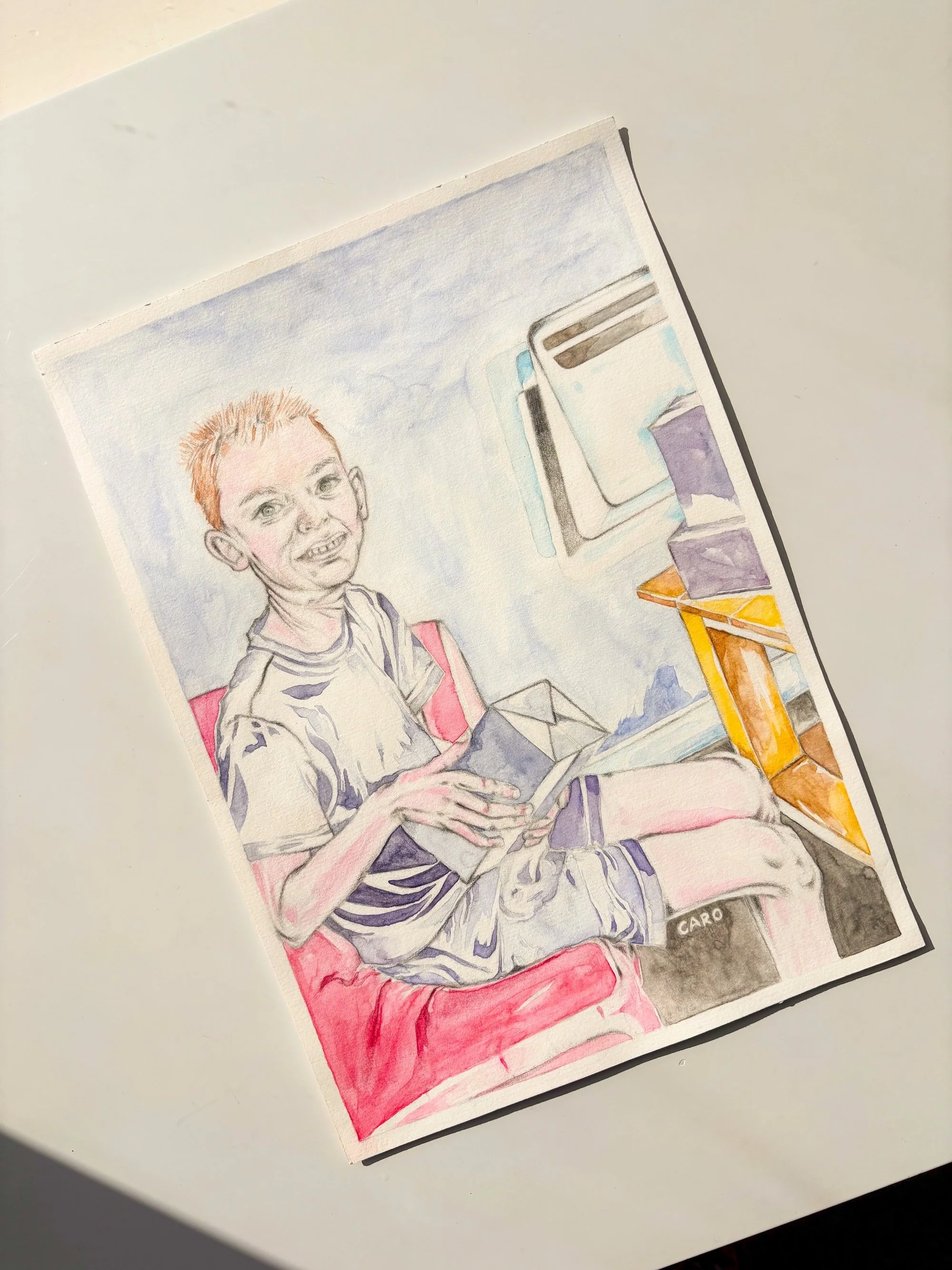 Graphite, Pebeo® watercolour paints and Maimeri® medium on 300gsm Fabriano® art paper, 21 x 29.7 cm, 2025.