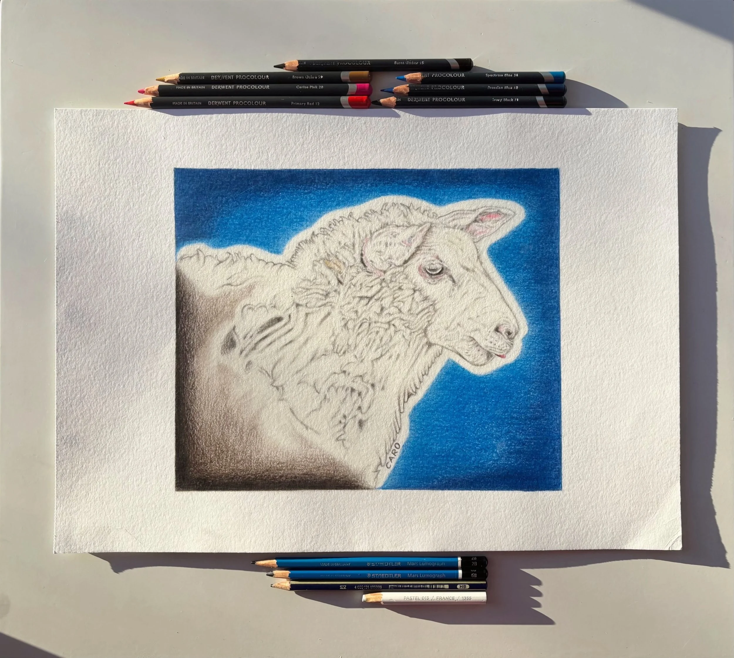 Graphite, Derwent® coloured pencils and Conte á Paris® pastel on 300gsm Fabriano® mixed media art paper, 29.7 x 42 cm, 2025.
